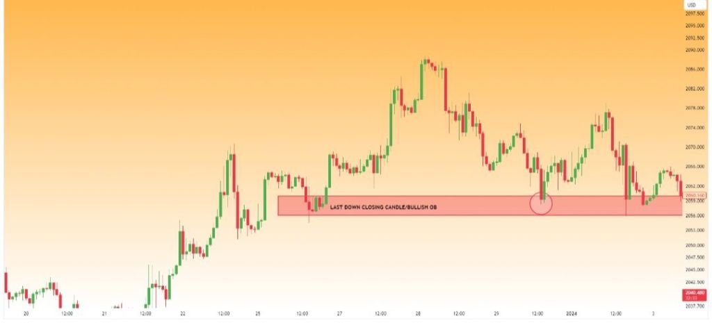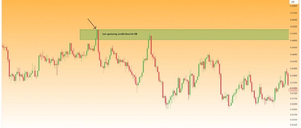 On the other hand, a Bearish Order Block is characterized by the last upward closing candle before the price undergoes a sharp and forceful downward movement. It signifies a critical level where large market participants, such as institutional traders, positioned significant sell orders, resulting in a significant decline in the market.